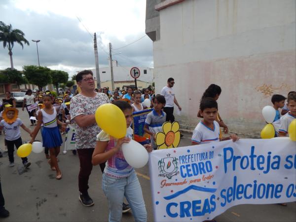 Na manhã desta sexta feira (17) foi de luta em defesa dos Direitos das Crianças e Adolescentes do Cedro, uma caminhada com alunos das redes pública e privada, funcionários da Prefeitura e população em geral. Durante a semana, as escolas trabalharam com dinâmicas, atividades interdisciplinares com os alunos utilizando o referido tema.
